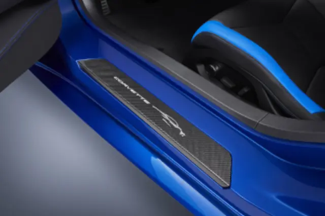 Enhance your vehicles appearance with these Chevrolet Accessories Door Sill Plates that have been designed for a precision fit. This door sill protector will help protect your doorframe from scratches, scrapes or scuffs, while providing an attractive accent to your door sill. Made of Visible Carbon Fiber, the set includes front and rear door sill plates, with the front featuring the Corvette Silhouette.